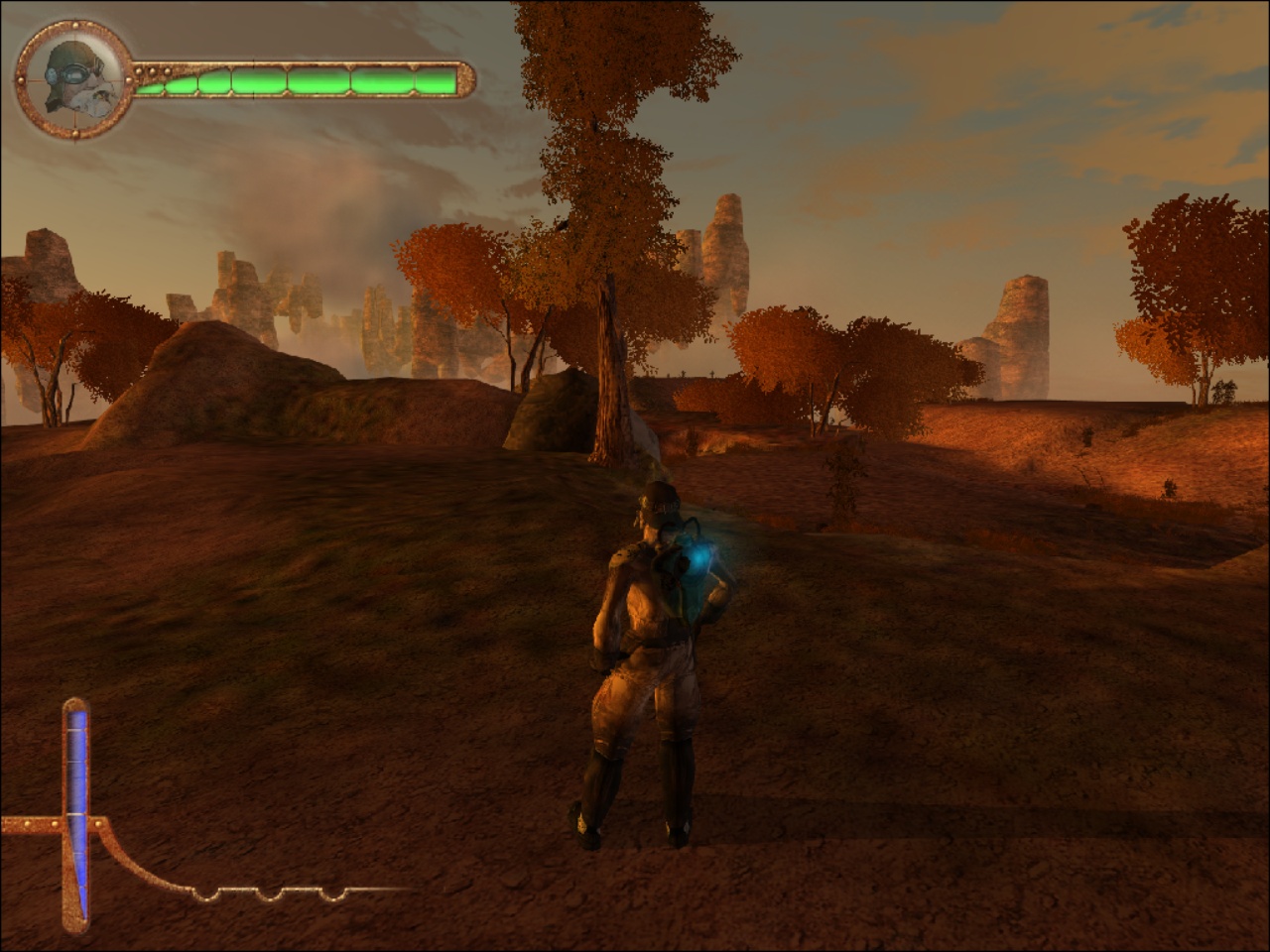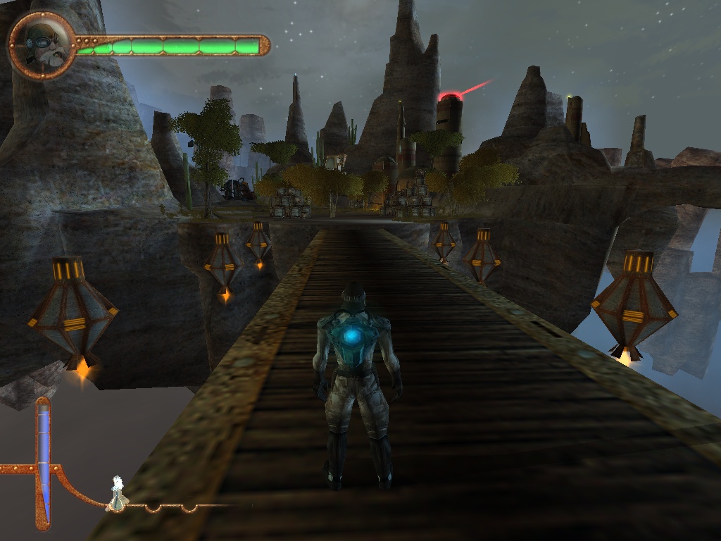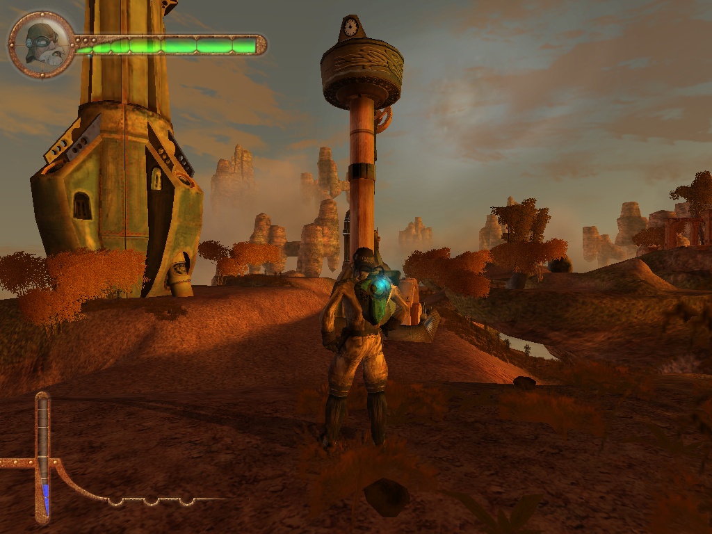 Bon, la première chose qui saute aux yeux quand on lance Project Nomads, c’est à quel point le jeu est abouti graphiquement. Pour un titre sorti en 2002, il n’y a pas d’autres termes, c’est BEAU. Les bâtiments sont détaillés, c’est fluide, et même si ça ne pète pas de couleurs, l’univers est magnifiquement retranscrit par les graphismes. Mais les graphismes ne font pas tout, car il faut que la direction artistique du titre suive également, et là encore c’est un sans fautes pour Radon Labs : l’univers Steampunk de Project Nomads est superbe, et rappelle un certain Beyond Good & Evil qui sortira un an plus tard. Le jeu se paie même le luxe d’avoir une esthétique différente pour les bâtiments suivant le personnage que l’on incarne, avec une esthétique florale et végétale très présente chez Susie, là où engrenages, machineries et acier seront omniprésents chez John par exemple. Cette qualité visuelle est accompagnée par une bande-son certes un peu déroutante au début mais qui colle parfaitement à cet univers post-apocalyptique paradoxalement très… serein dans son ambiance. A noter cependant qu'à l’époque, cette qualité visuelle et auditive avait un coût, et le jeu nécessitait une configuration plutôt élevée pour fonctionner correctement, au point de le rendre difficilement accessible pour les machines plus modestement équipées si on en croit les tests parus dans la presse de l’époque.