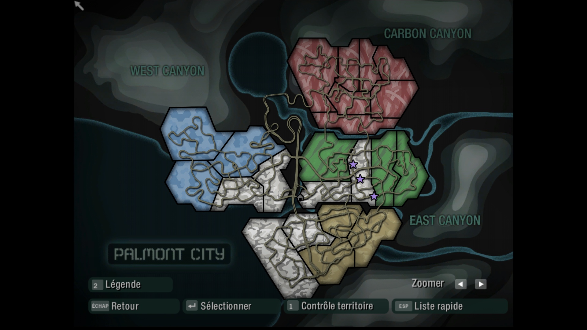 Palmont City est divisée en quatre quartiers, chacun subdivisé en un certain nombre de territoires comprenant plusieurs épreuves. Lorsque le joueur remporte plus de la moitié des épreuves d’un territoire, alors ce dernier est conquis par le gang du joueur, et si tous les territoires d’un quartier ont été remportés, alors le boss local viendra défier le joueur en face-à-face afin de déterminer définitivement le chef de la localité. Le but sera donc à terme de conquérir l’ensemble des quartiers, afin d’acquérir à sa cause les pilotes de rue qui se sont sentis floués par le protagoniste, et les convaincre de sa propre innocence. Au fil des pilotes ralliés à sa cause et de leurs témoignages sur la nuit de l’incident, le joueur découvrira ainsi le vrai coupable du coup monté, et pourra le provoquer en duel afin de le chasser définitivement de la ville.