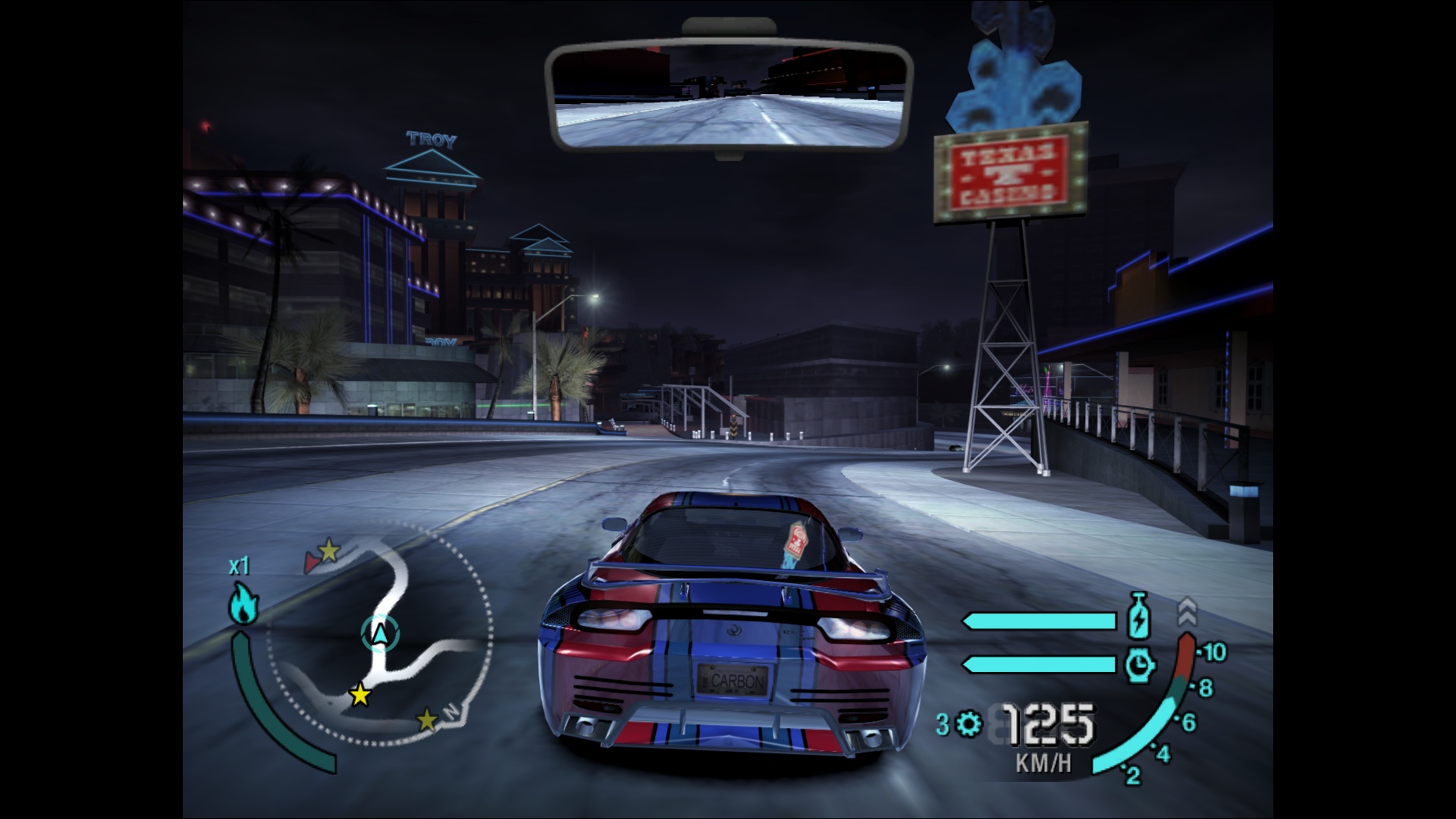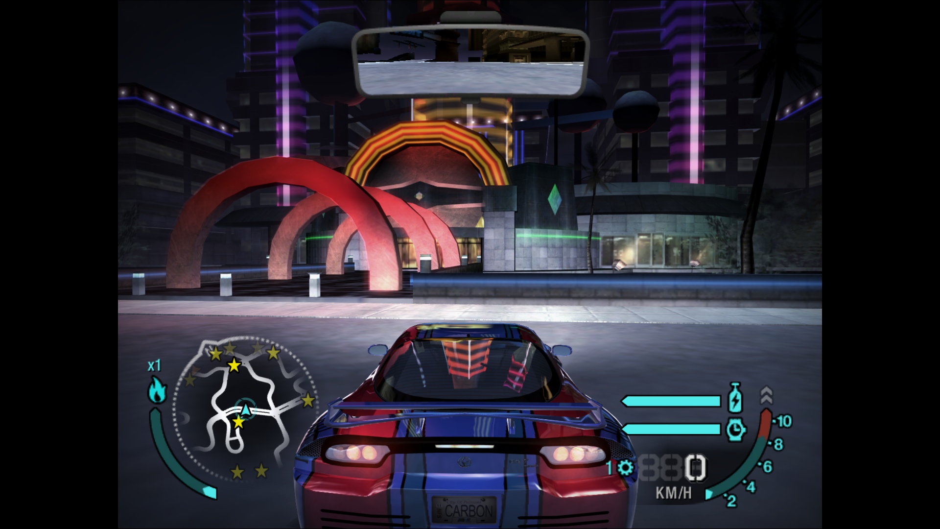 Cependant, la carrière bien moins marquante que celle de Most Wanted, le monde ouvert moins vaste malgré la présence de courses dans les canyons, le système de coéquipier qui peut sembler parfois accessoire, sans compter l’intelligence artificielle assez limitée de notre partenaire en course, la durée de vie artificiellement gonflée avec le fait de devoir rejouer certaines épreuves quand nos territoires sont attaqués, et un équilibrage imparfait avec des épreuves accessibles qui côtoient des poursuites toujours aussi difficiles, frustrantes et injustes, les policiers semblant se téléporter sur la position du joueur lorsque nous sommes sur le point de les semer, sont de véritables accrocs qui rendent l’expérience assez imparfaite. Ajoutons à cela qu’il s’agit du quatrième titre consécutif utilisant la formule des courses de rues dans une ville fantasmée des États-Unis, et force est de constater que le principe commence à s’essouffler, les nouveautés ayant un peu de mal à justifier une nouvelle itération reposant encore sur le même topo. Si Need for Speed Carbon est globalement réussi et reste très amusant à jouer, il possède tout de même des défauts plus ou moins agaçants, et est en quelque sorte l’ultime forme d’une formule qui semble avoir atteint ses limites.