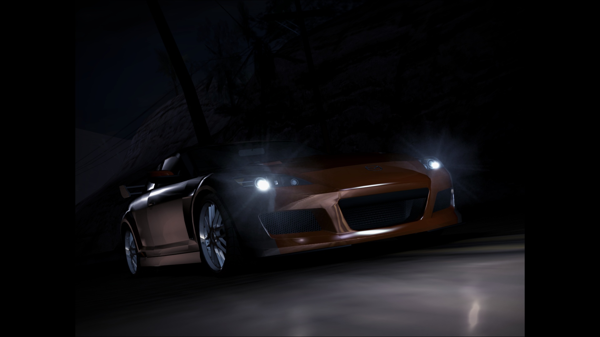 Concernant les modèles de voitures, ces derniers sont toujours d’une grande qualité, et font toujours autant honneur à leurs homologues du monde réel. Le flou cinématique lors des pointes de vitesse est moins prononcé, ce qui aide à la visibilité au détriment de l’impression de vitesse,même si les feux arrières laissent toujours des traînées rouges lorsque nous utilisons de la nitro.Un travail tout particulier a été effectué sur les réflexions de lumière, avec les carrosseries des voitures qui présentent des reflets en temps réel des lumières artificielles qui émaillent la ville, ce qui est du plus bel effet. Enfin, les effets de fumée et de pluie sont toujours de grande qualité,même si on regrettera une nouvelle fois qu’il pleuve assez peu (logique ceci dit au milieu du désert) et que cela n’aie un effet que cosmétique, l’adhérence de la chaussée restant la même que cette dernière soit mouillée ou sèche. Au global, Need for Speed Carbon est un titre sublime, qui apporte une réelle amélioration graphique à la saga, tout en ayant une direction artistique moins singulière et clivante que son prédécesseur.