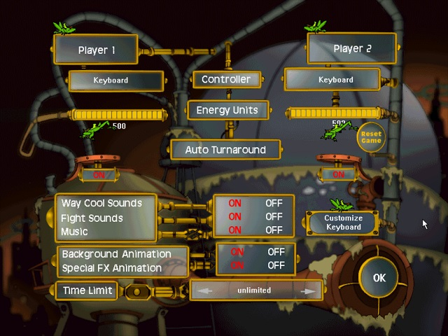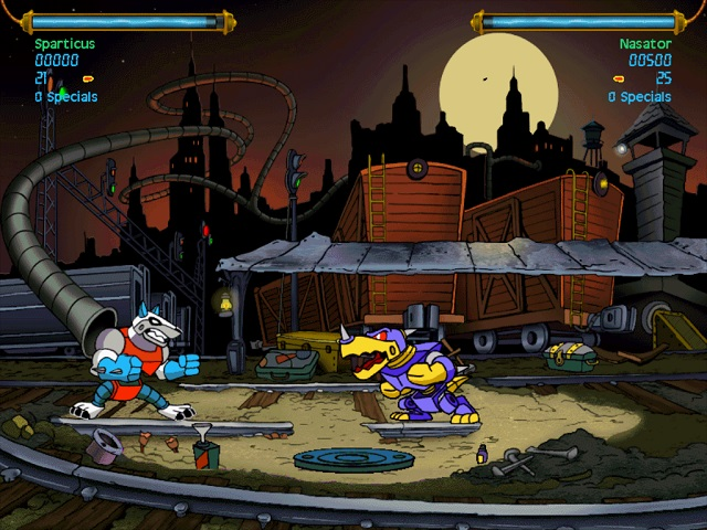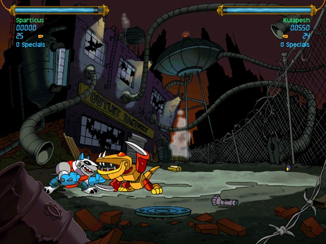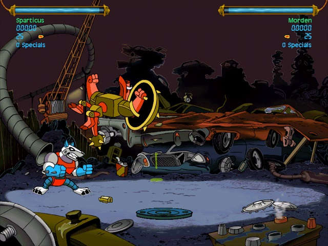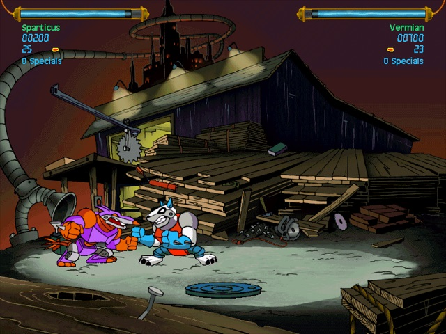 Une technique maîtriséeLes gars de 7th Level maîtrisent très bien la 2D, Tuneland en est la preuve. On peut donc dire qu'ils sont en terrain connu avec Battle Beast, car son style graphique est le même, et ce même si l'univers a changé. D'ailleurs pour l'époque, c'est vraiment de la très bonne 2D. Si je devais comparer, je dirais que graphiquement, Battle Beast n'a rien à envier à des productions comme les premiers Guilty Gear (ça va faire des jaloux ça). Au niveau du son, par contre, c'est plus mitigé. En effet de ce côté-là, le pire ennemi de Battle Beast c'est Tuneland, avec ses morceaux enregistrés sur piste CD. et pour la bande son de Battle Beast, on peut malheureusement constater que les gars de 7th Level se sont un peu relâchés. Les bruitages sont en effet anecdotiques, et les musiques MIDI sont insipides. Dommage, car il y avait moyen de faire un truc vraiment cool.