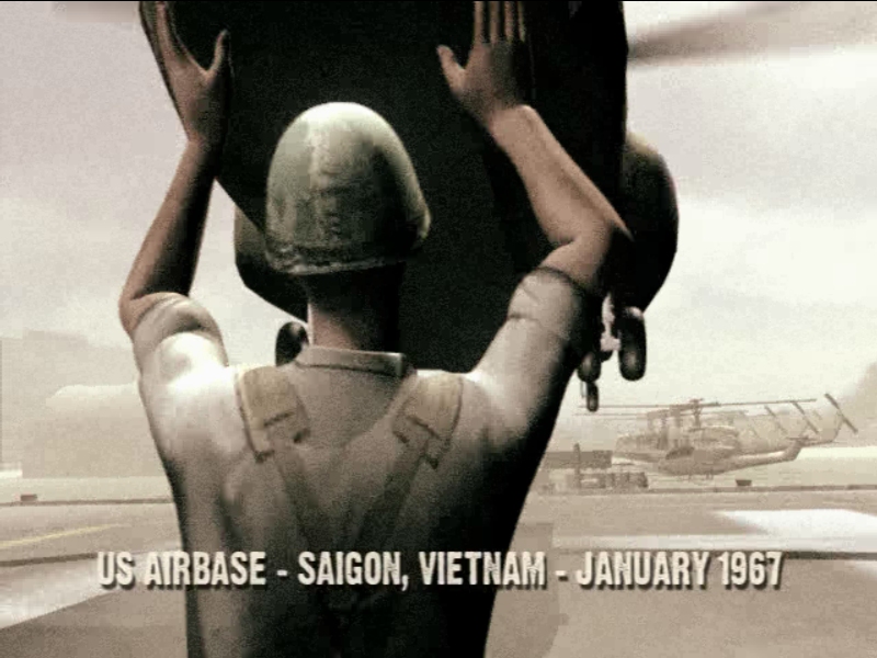 C’était pas ma guerre !Le jeu prend place en 1967, plusieurs années avant la fin officielle du conflit en 1975, et commence dans la base américaine de Saigon, au Vietnam du Sud. Le joueur incarne Caleb Walker, jeune G.I. fraîchement arrivé dans le pays pour ses premières missions, sous la houlette du colonel Salter. Et nous voilà parti dans une série de missions contre les communistes du Vietnam du Nord, avec leur lot d'événements horribles qui vont laisser notre protagoniste marqué à vie. Du moins, ça c’est la théorie, parce que dans la pratique, les visages inexpressifs des personnages laissent quand-même un peu… de marbre, sans mauvais jeu de mot.
