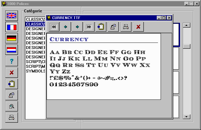 FonctionnementEnfin, un CD-rom de 1996 pas du tout obsolète ! Les polices sont rangées dans les sous-dossiers des dossiers suivants, à la racine du CD : Classic, Designer, Script et Symbols. Il est possible de tester la visionneuse avec PCem + Windows 98, mais ça ne sert plus à rien, car les Windows moderne savent prévisualiser les polices en .ttf (allez dans Paramètres -> Personnalisation -> Polices et glisser les fichiers du CD-rom vers "ajouter des polices")