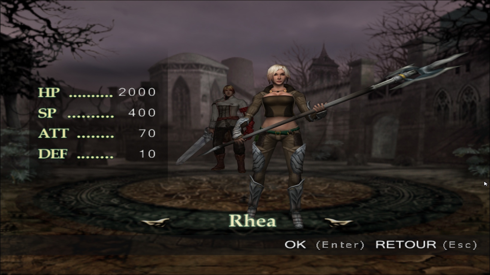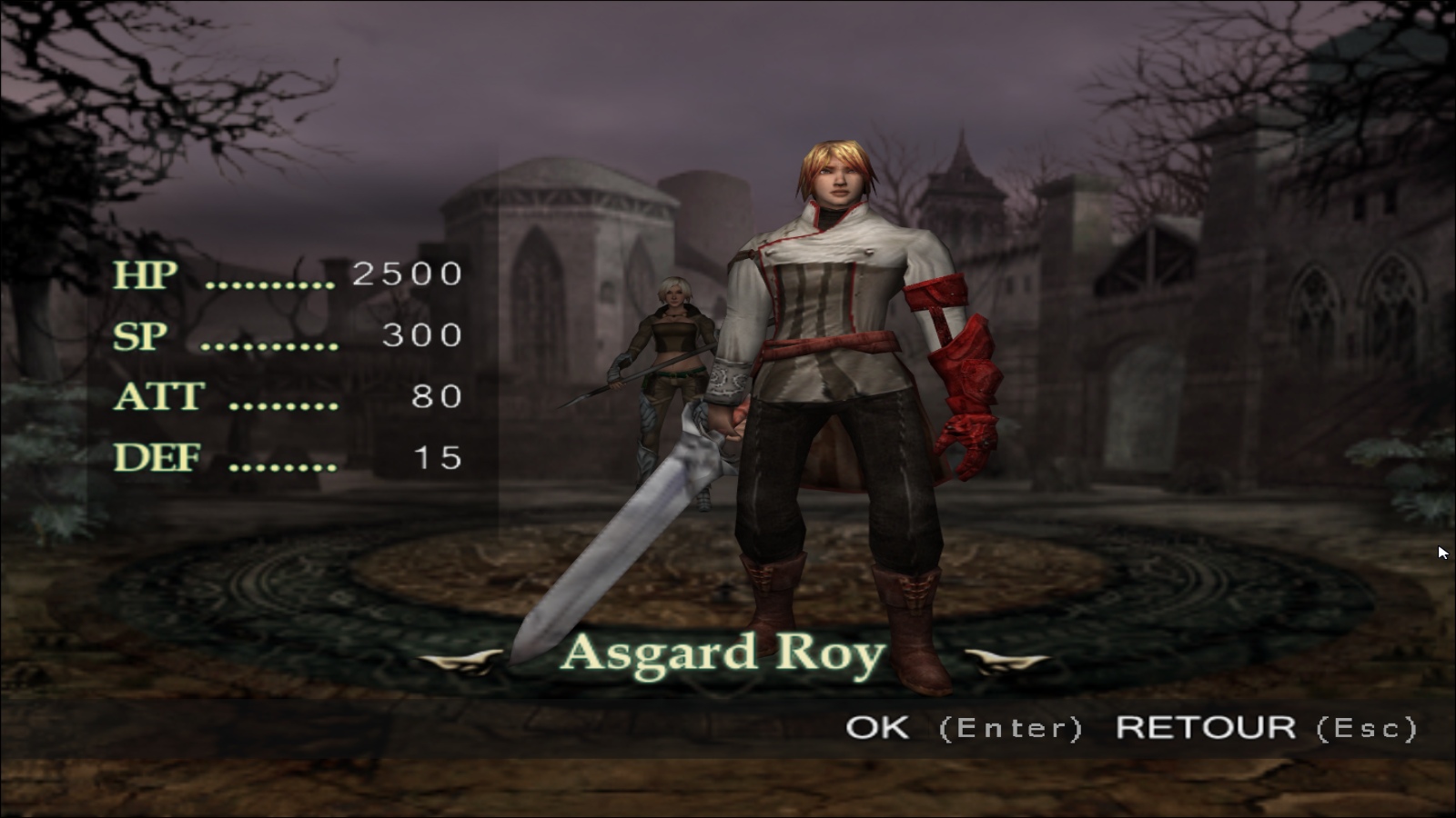Peste Démoniaaaaaaaaaaaaaaaque !!!Le scénario de Daemon Vector est incroyablement mis en scène (dis-je d’un ton sarcastique). Une étrange malédiction se répand dans toute l’Europe au XIVème siècle, les animaux deviennent des monstres, les morts se relèvent et transforment les vivants en zombies, appelés Velis dans le jeu. On se rend vite compte que les responsables sont des larves d’insectes appelées Nécrolocustes, et il va falloir lever le voile sur ce mystère mystérieux, absolument horrible et… Oui bon, je fais ce que je peux pour rendre cette histoire cliché au possible un minimum intéressant, mais c’est pas facile, surtout que quasiment rien n’est raconté dans le jeu en lui-même, le manuel étant par exemple le seul moyen de connaître l’histoire des deux protagonistes que l’on peut incarner. D’ailleurs parlons-en des protagonistes, dont l’apparence serait probablement le résultat obtenu si on demandait à une IA de nous générer une image d’un protagoniste de jeu japonais le plus cliché possible. Asgard Roy, le héros masculin ressemble à une version sans charisme de Dante de Devil May Cry à qui on aurait mis un visage de chanteur de J-Pop, le tout avec une petite cinématique d’introduction qui est censée nous montrer à quel point notre personnage est stylé de ouf en retirant sa capuche et en la laissant flotter au vent. Je passe sur la protagoniste féminine avec la poitrine opulente et dont la coiffure semble avoir été reprise d’Ophélie Winter à son prime dans les années 1990, et nous voilà envoyés dans la zone du tutoriel.