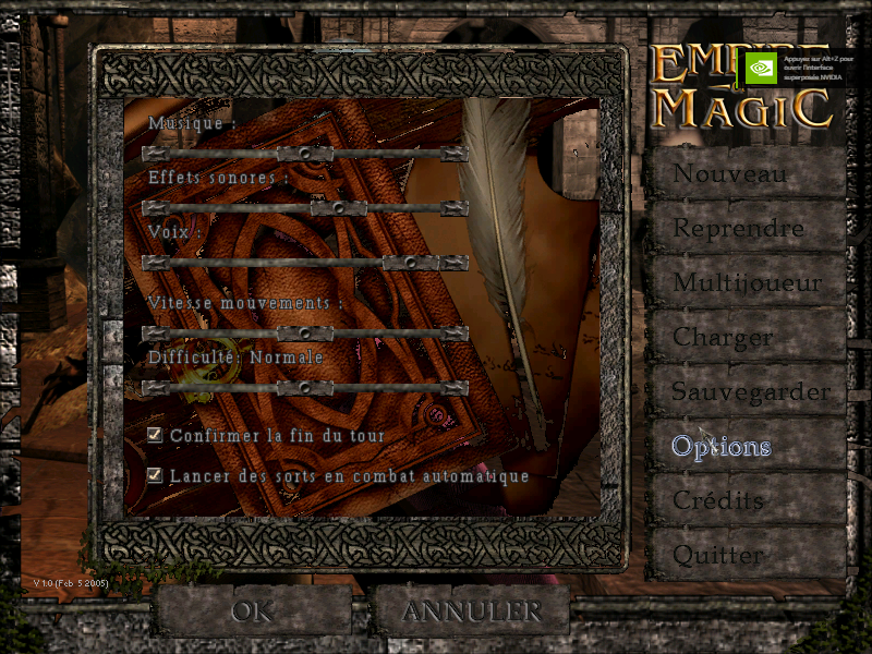 Une ambition très clairement affichée des deux côtés de la jaquette, avec d’un côté un immense “Le renouveau de la stratégie au tour par tour !” et de l’autre un grand “La nouvelle référence du genre !”. Autant dire que le titre des développeurs slovaques de chez Mayhem Studios, sorti en 2003 chez nous par l’intermédiaire de Nobilis (OH NON) avait intérêt à être à la hauteur de ses promesses… Qui vont rapidement se casser la figure quand on voit le résultat final. Je vous ai précisé que Empire of Magic est sorti un an avant Shadow Vault, un sous-Fallout de très très mauvaise facture développé par le même Mayhem Studios ? Non ? Bah voilà, maintenant vous avez une bonne idée de ce qui vous attend dans ce Empire of Magic pourtant très généreux en termes de diversité de jaquettes, car les illustrations sont différentes selon les pays (en tout cas pour les versions visibles sur MobyGames, à savoir les versions française, états-unienne, allemande et italienne), bien qu’on ait toujours cette similarité de jeu d’Heroic Fantasy.