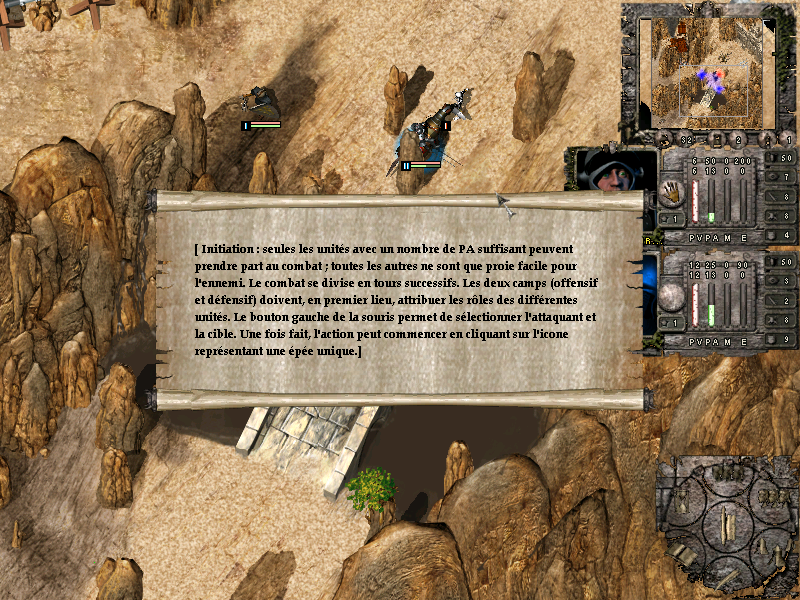 Si vous êtes coutumiers de mes articles, vous savez que j’aime bien détailler un peu le gameplay, l’histoire… Histoire qu’avant que vous ne téléchargiez le jeu, vous saviez à l’avance à quoi vous attendre. Je suis au regret de vous annoncer que le vide intersidéral que constitue l’histoire d’Empire of Magic ne vaut pas vraiment le coup que l’on s’y attarde, loin de là. Si on n'atteint pas le niveau de scénario-prétexte d’un Doom, on n'en est pas si éloigné que ça, avec une quête initiatique d’un jeune mage qui va devoir arrêter un seigneur des ténèbres. Une aventure qui vous fera bailler d’ennui rapidement si vous avez déjà touché à n’importe quel RPG de qualité, et ce n’est pas la voix monocorde et soporifique du conteur qui rendra l’histoire plus attrayante, malheureusement.