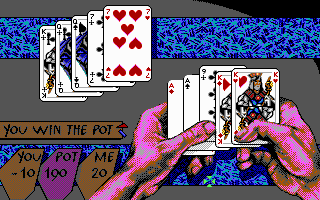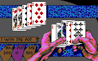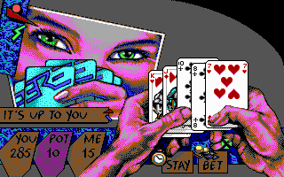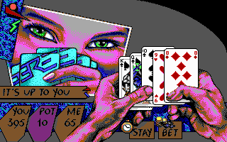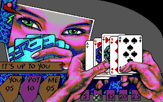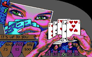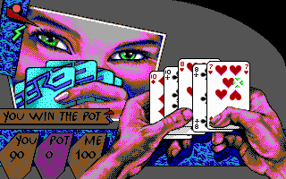 PrésentationTeenage Queen, un jeu qui a fait fantasmer des milliers d'adolescents à la fin des années 80. Il s'agit d'un jeu de strip-poker, mais à la différence des autres productions de ce genre, ici pas de photos mal digitalisées accompagnées d'un semblant d'intelligence artificielle. A la place, un jeu de poker d'un niveau potable, capable de coups de bluff très énervants (mais parfois avec des réactions ridicules comme une tendance à "dropper" dès qu'on a mieux qu'une paire). Bien sûr, il existe de meilleurs jeux de poker, mais dans sa catégorie il n'est pas mauvais (même si un bon joueur en viendra facilement à bout).
